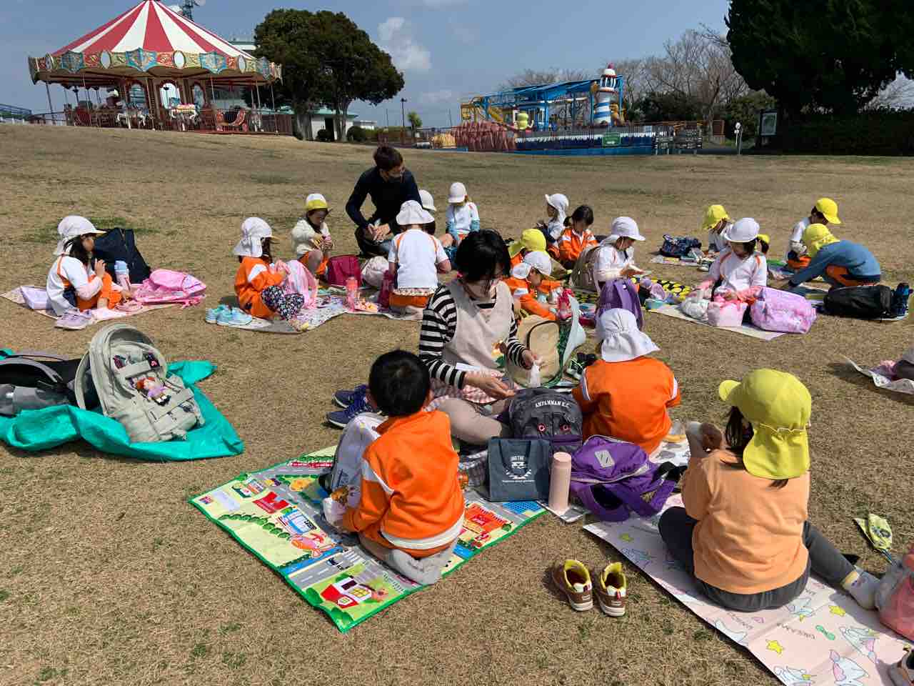 チーム別散策の後は広場でお弁当タイムです。