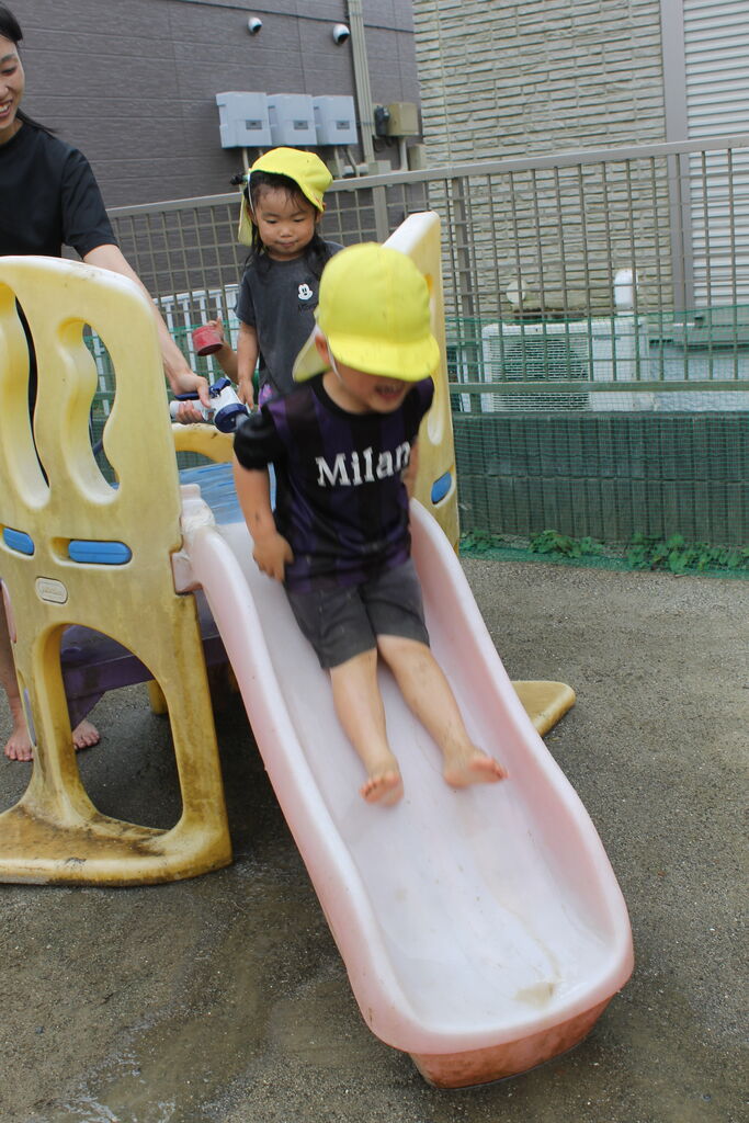 滑り台もお水が流れるウォータースライダーに変身🛝