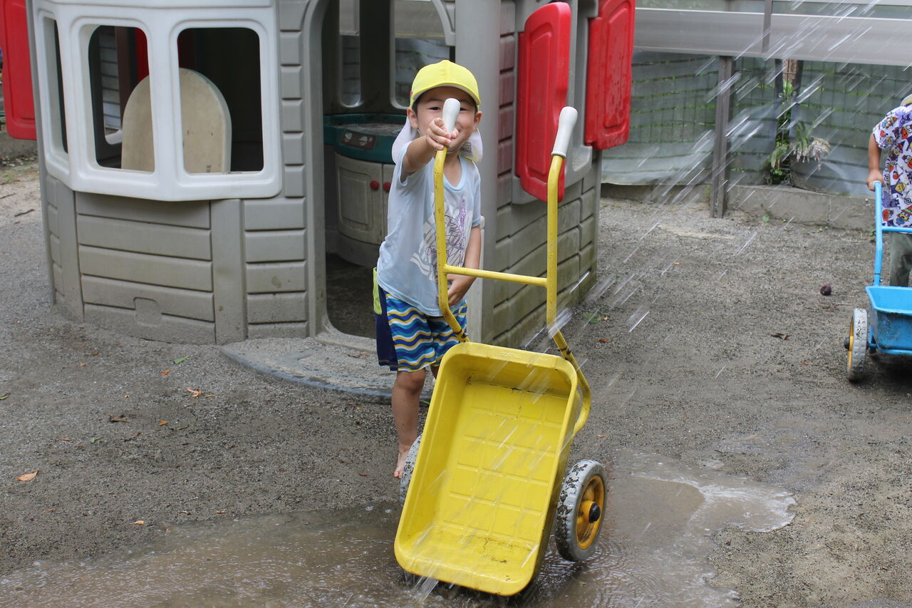 おもちゃを使ってお水を運んでみるお友達もいますよ✨