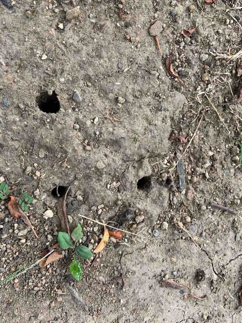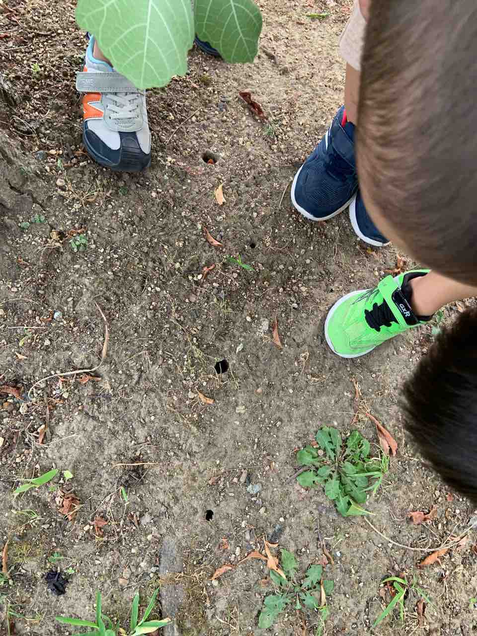 すると、地面に穴がたくさんあいているのを見つけました😃