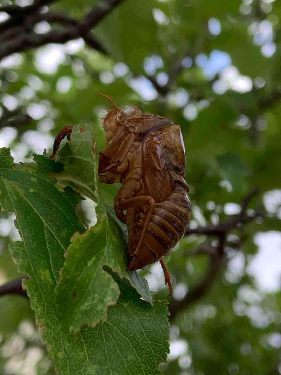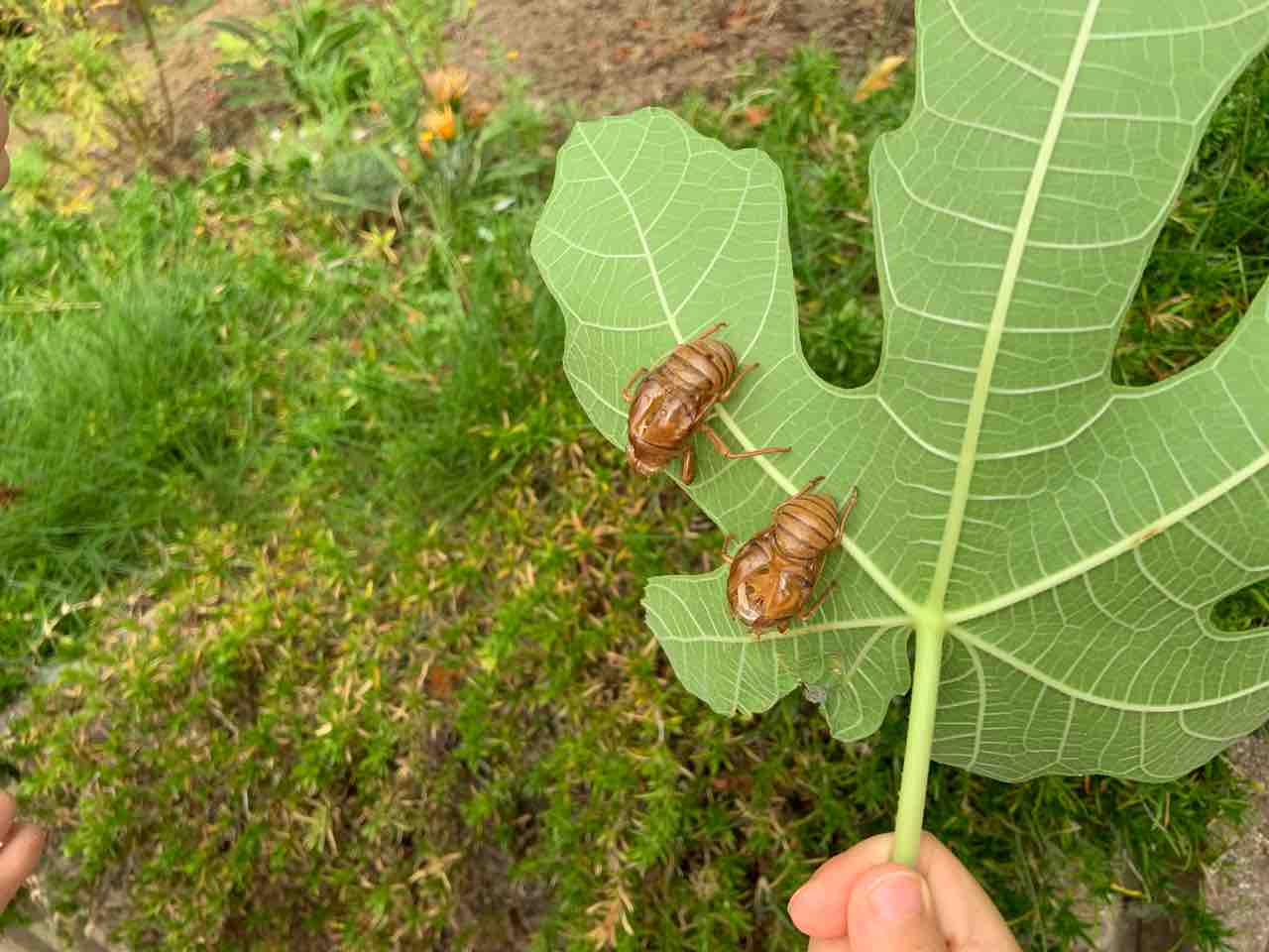 穴の上にあるプラムの木には、たくさんの蝉の抜け殻がありました😄