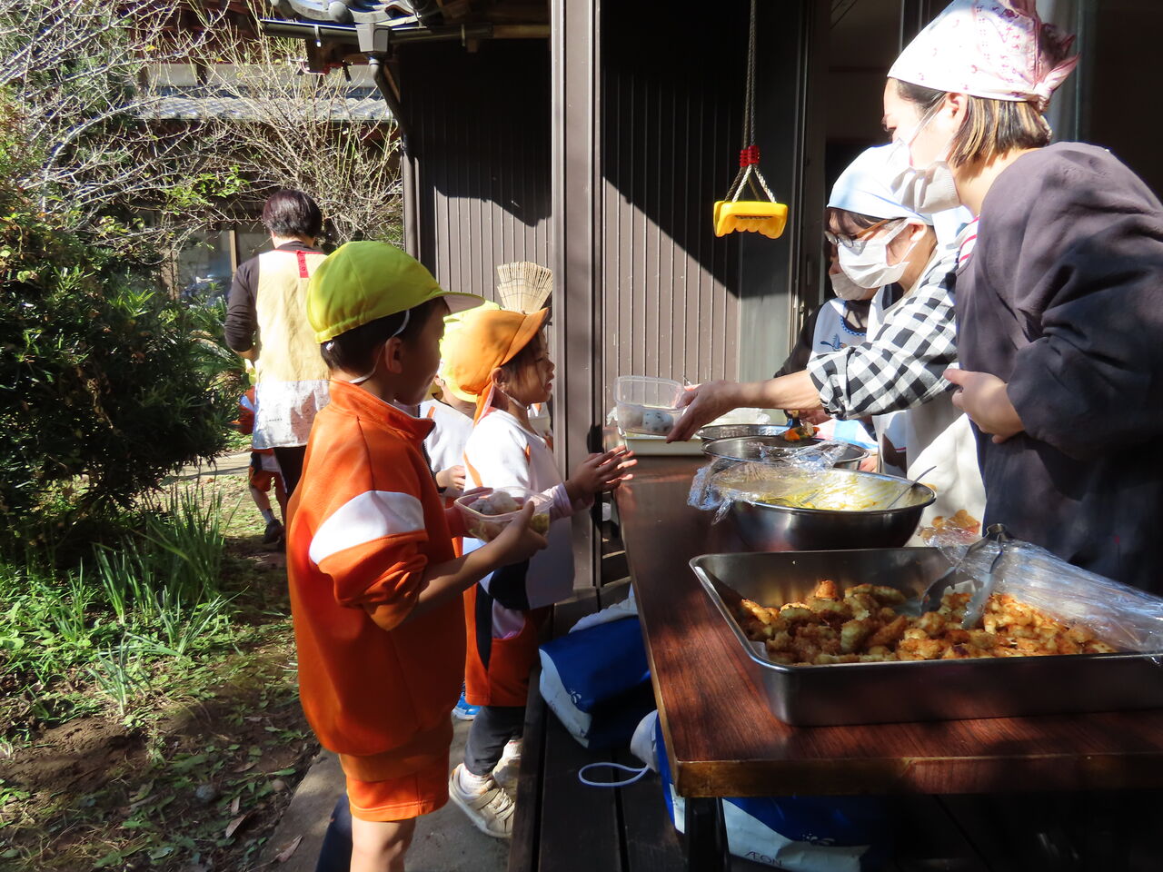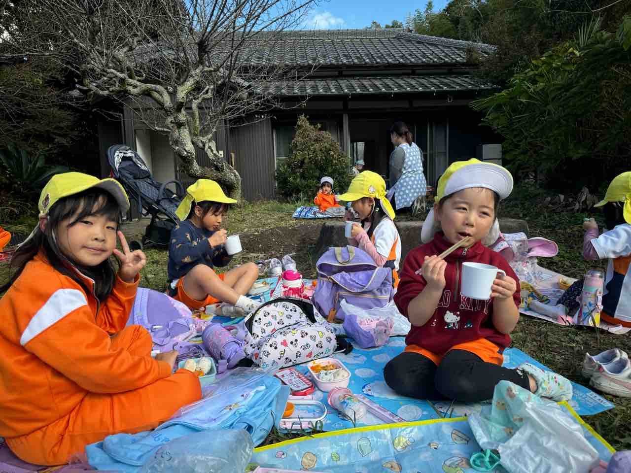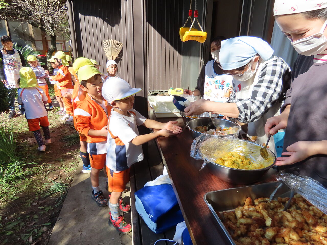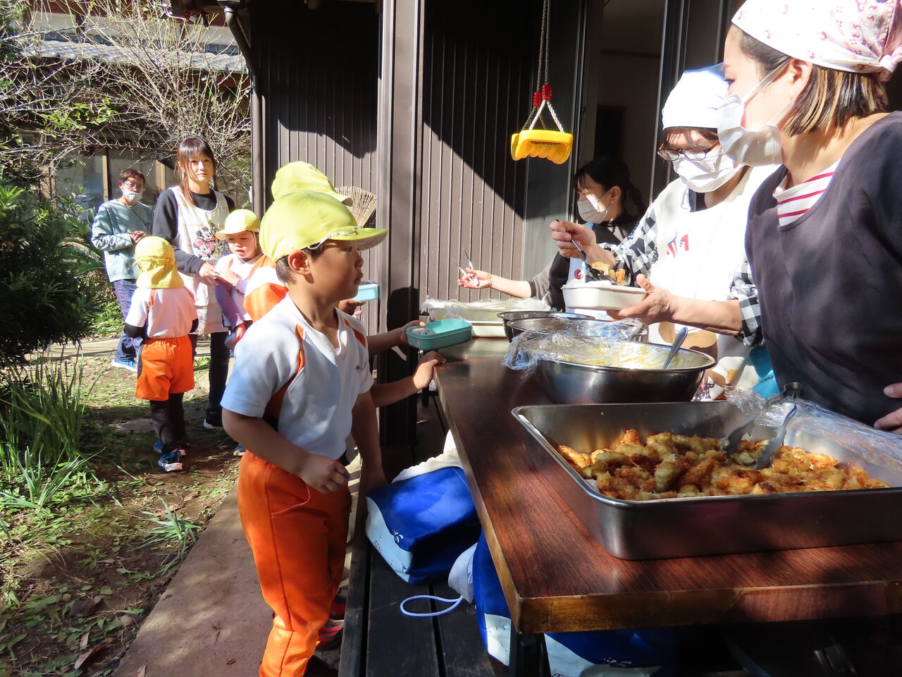 次回の青空給食は12月3日(火)の焼き芋会にて予定しております。3日までに一段のお弁当箱(タッパーも可)、食具、レジャーシートのご用意よろしくお願いします!