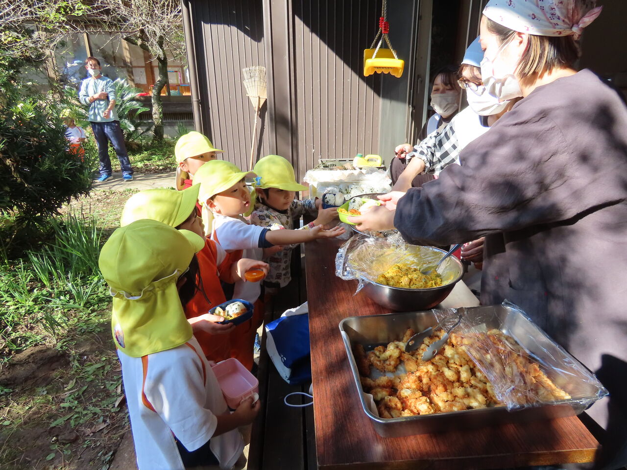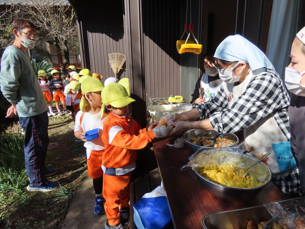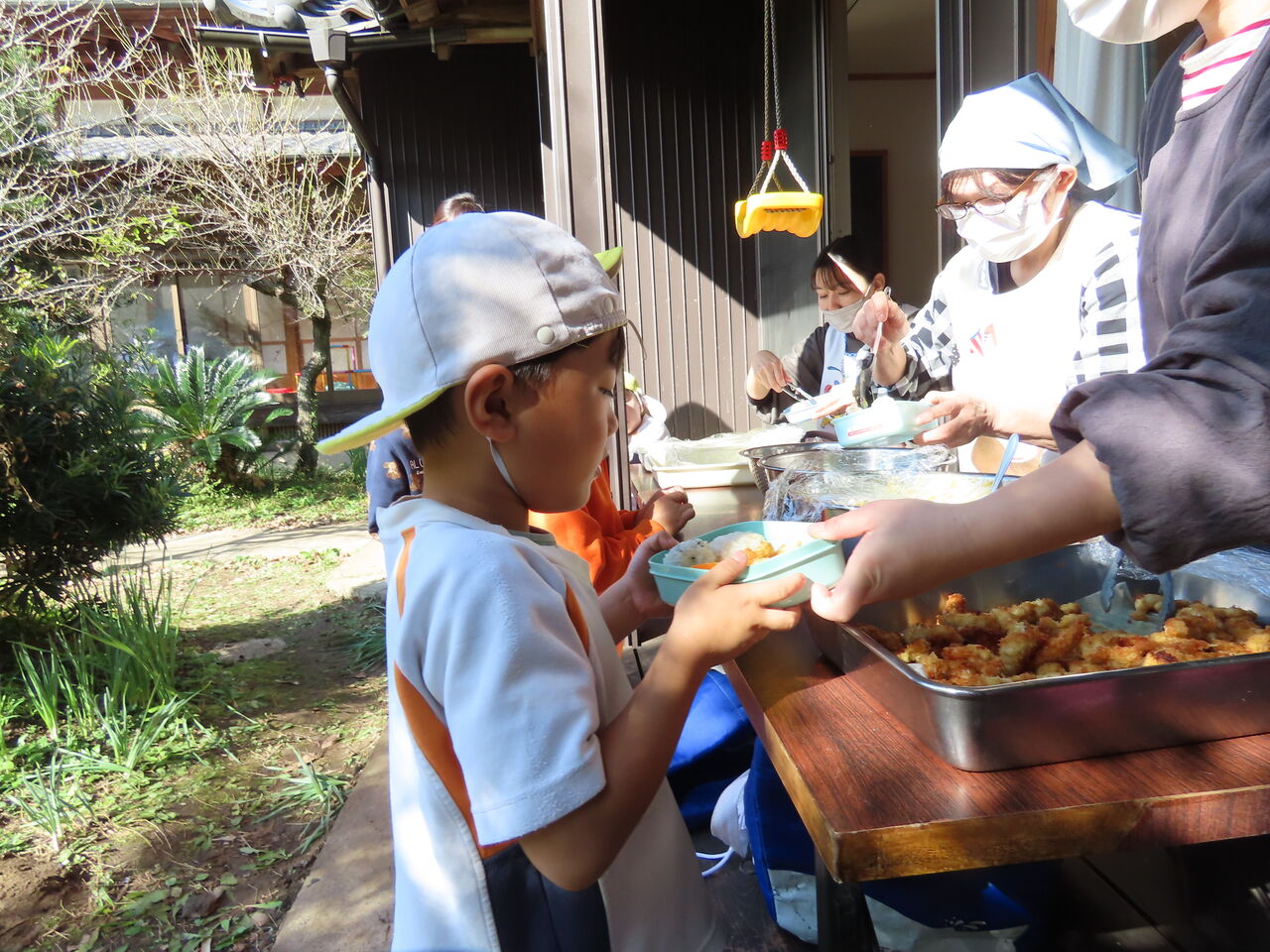 次回の青空給食は12月3日(火)の焼き芋会にて予定しております。3日までに一段のお弁当箱(タッパーも可)、食具、レジャーシートのご用意よろしくお願いします!