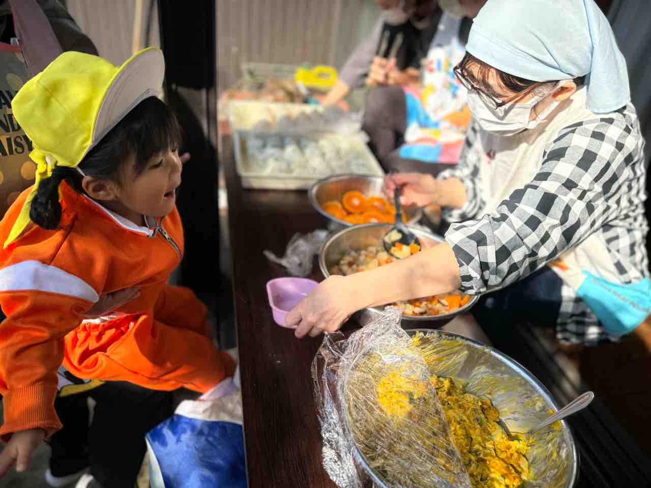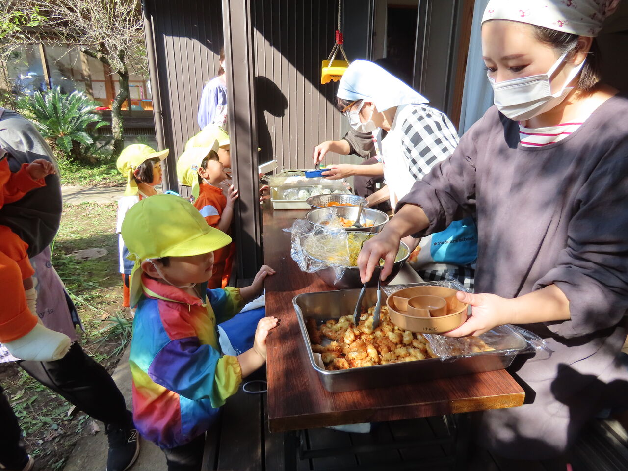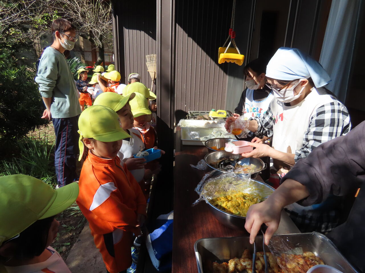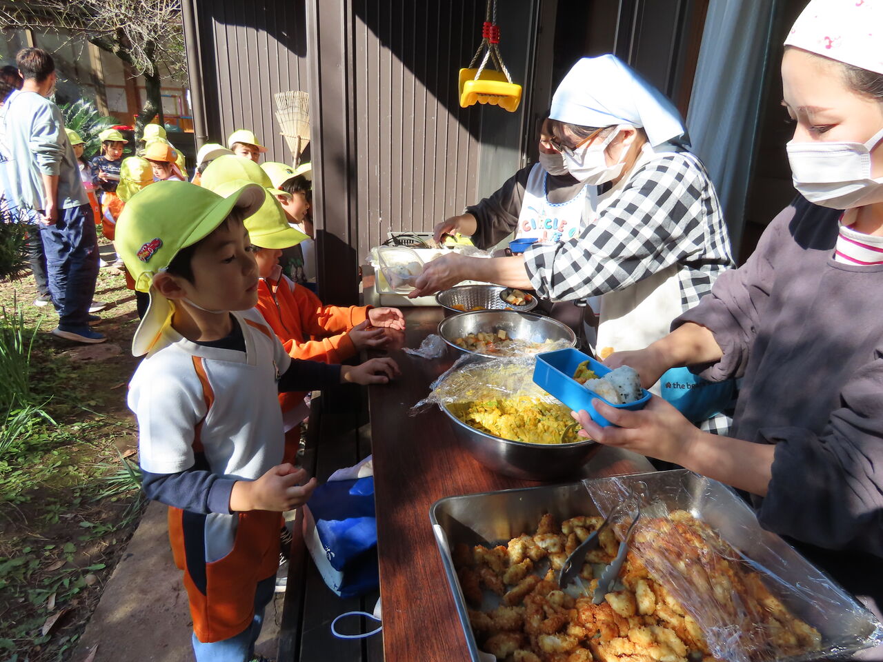 次回の青空給食は12月3日(火)の焼き芋会にて予定しております。3日までに一段のお弁当箱(タッパーも可)、食具、レジャーシートのご用意よろしくお願いします!