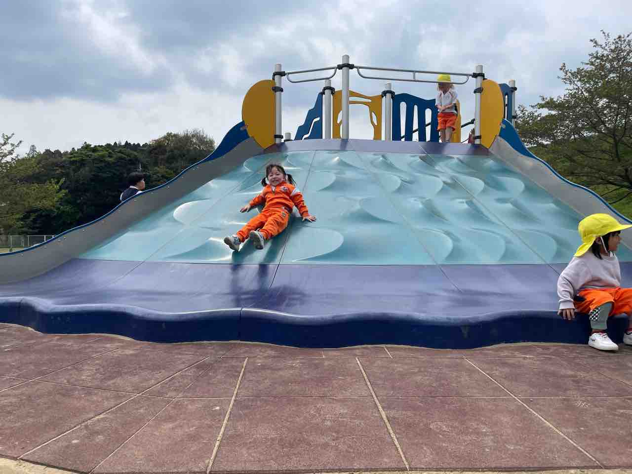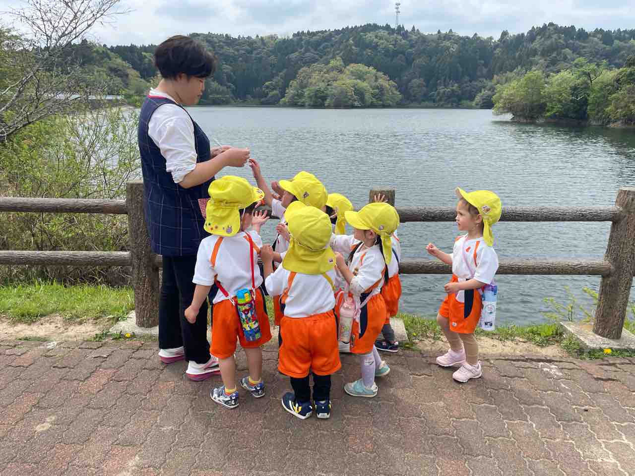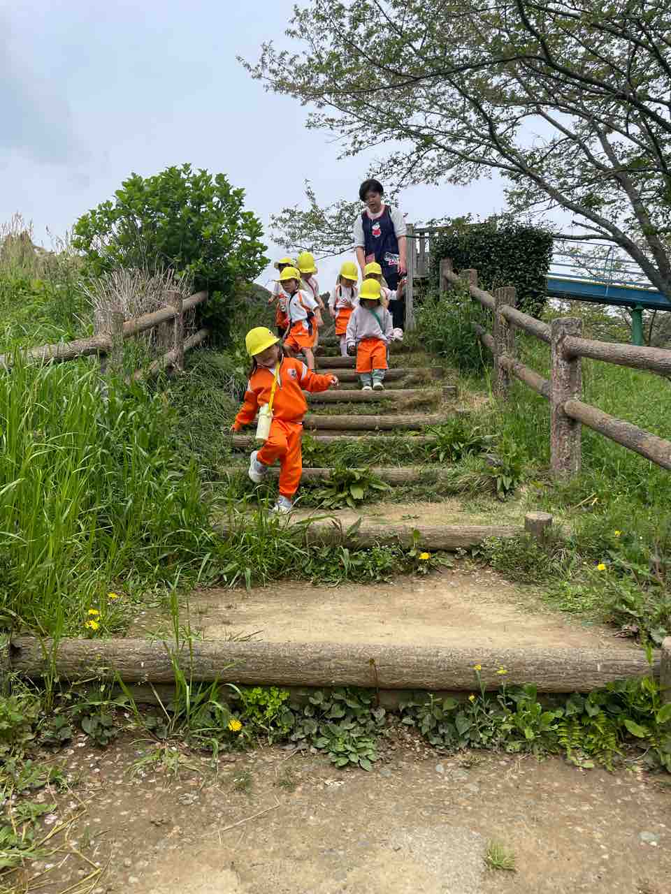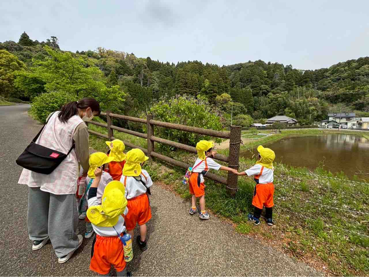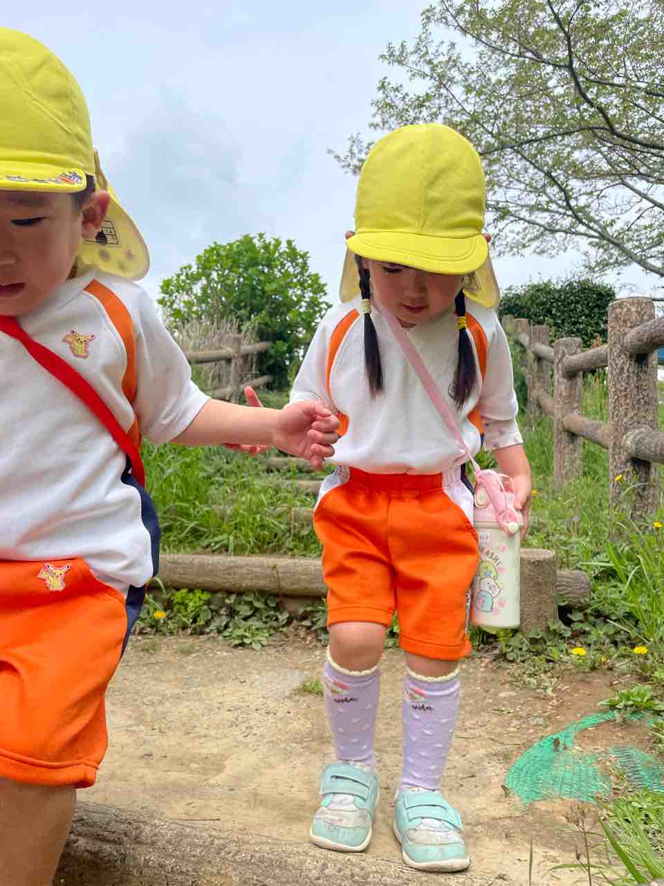 初めてのおでかけ(きりん組3歳児クラス) 2025年04月18日(金) 保育活動の様子 4月18日(金)⛅ きりん組初めてのお出かけに行ってきました!行き先は小中池公園でした。 初めてのバスでのお出かけお約束を何個かしてから乗りました! 小中池公園につき、初めは上まで登り大きな池を観察カメや鯉がいました。大きな鯉をサメと言って怖がる子もいましたよ。 上から遊具を見ていると遊びたい!との声が。階段を降りながらお花や虫を観察しました! 次は鯉のぼりを見に行こうねとみんなで楽しみにしています。 アリの巣を見つけたり、滑り台の裏が水色で水の中と思っ多様で滑り台を滑るお友達をカエルみたいと楽しむ会話も聞こえてきました