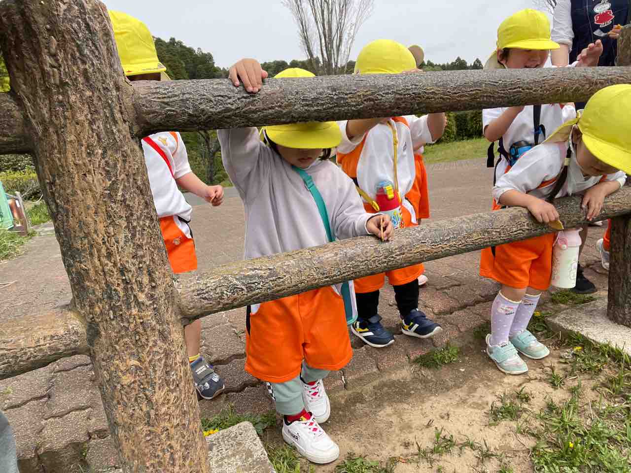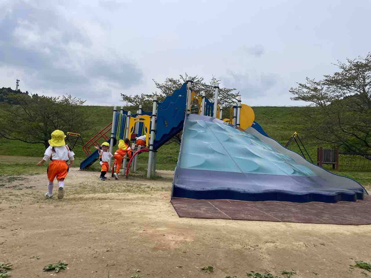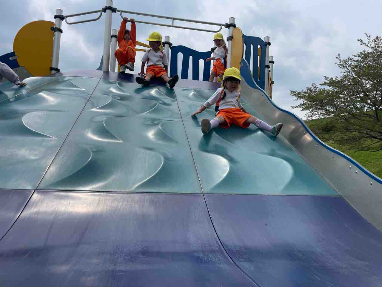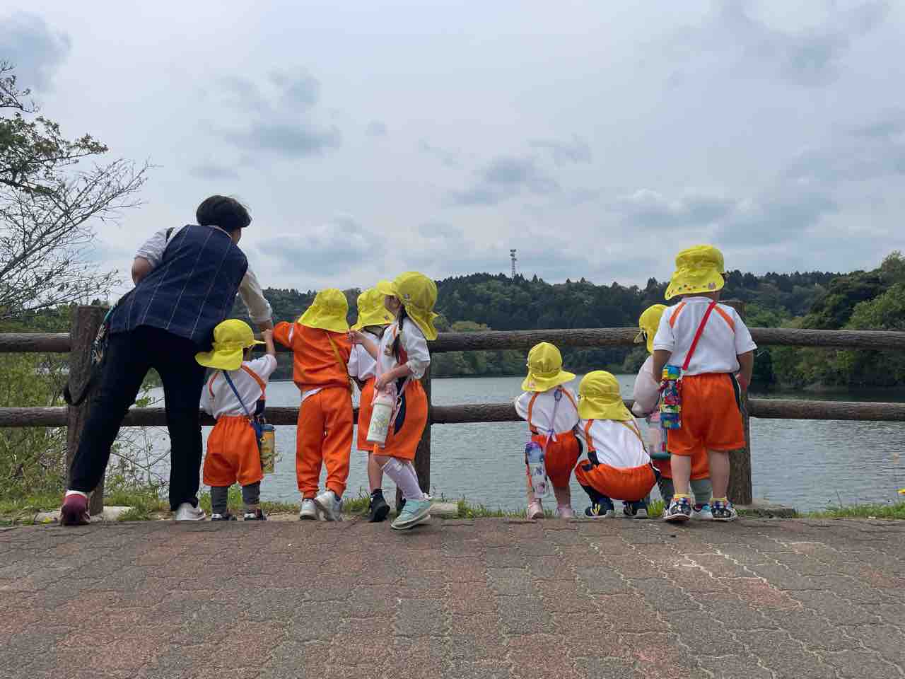 初めてのおでかけ(きりん組3歳児クラス) 2025年04月18日(金) 保育活動の様子 4月18日(金)⛅ きりん組初めてのお出かけに行ってきました!行き先は小中池公園でした。 初めてのバスでのお出かけお約束を何個かしてから乗りました! 小中池公園につき、初めは上まで登り大きな池を観察カメや鯉がいました。大きな鯉をサメと言って怖がる子もいましたよ。 上から遊具を見ていると遊びたい!との声が。階段を降りながらお花や虫を観察しました! 次は鯉のぼりを見に行こうねとみんなで楽しみにしています。 アリの巣を見つけたり、滑り台の裏が水色で水の中と思っ多様で滑り台を滑るお友達をカエルみたいと楽しむ会話も聞こえてきました