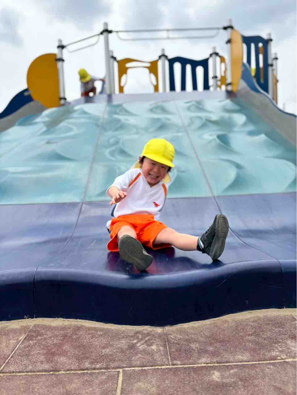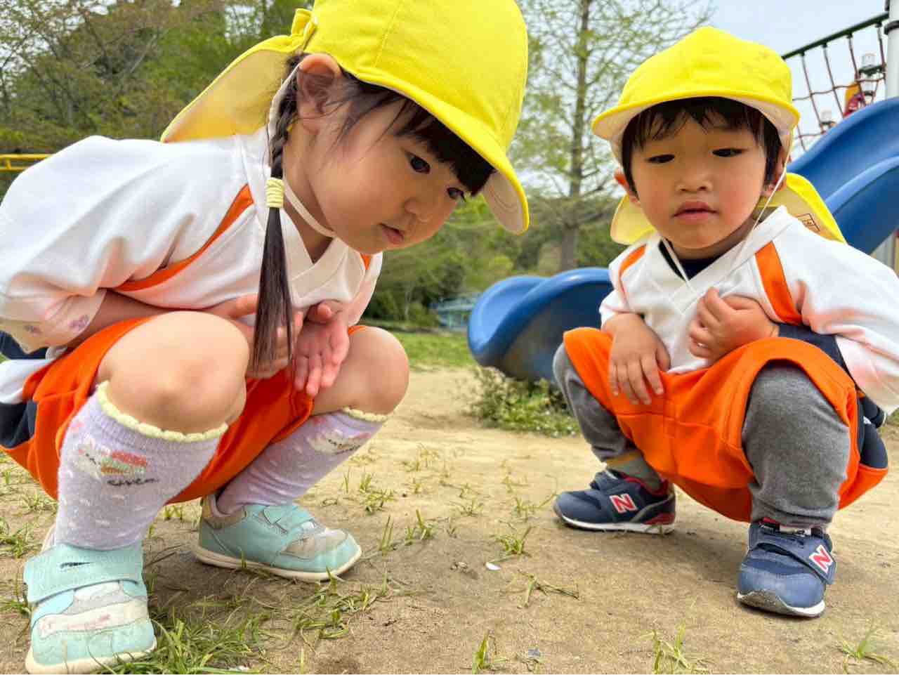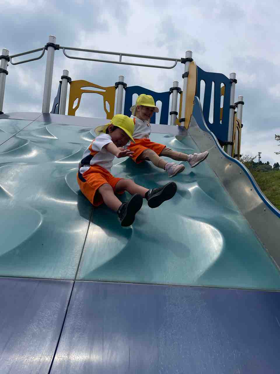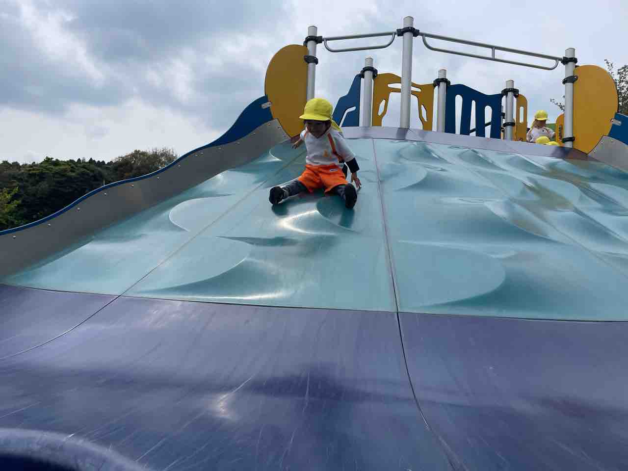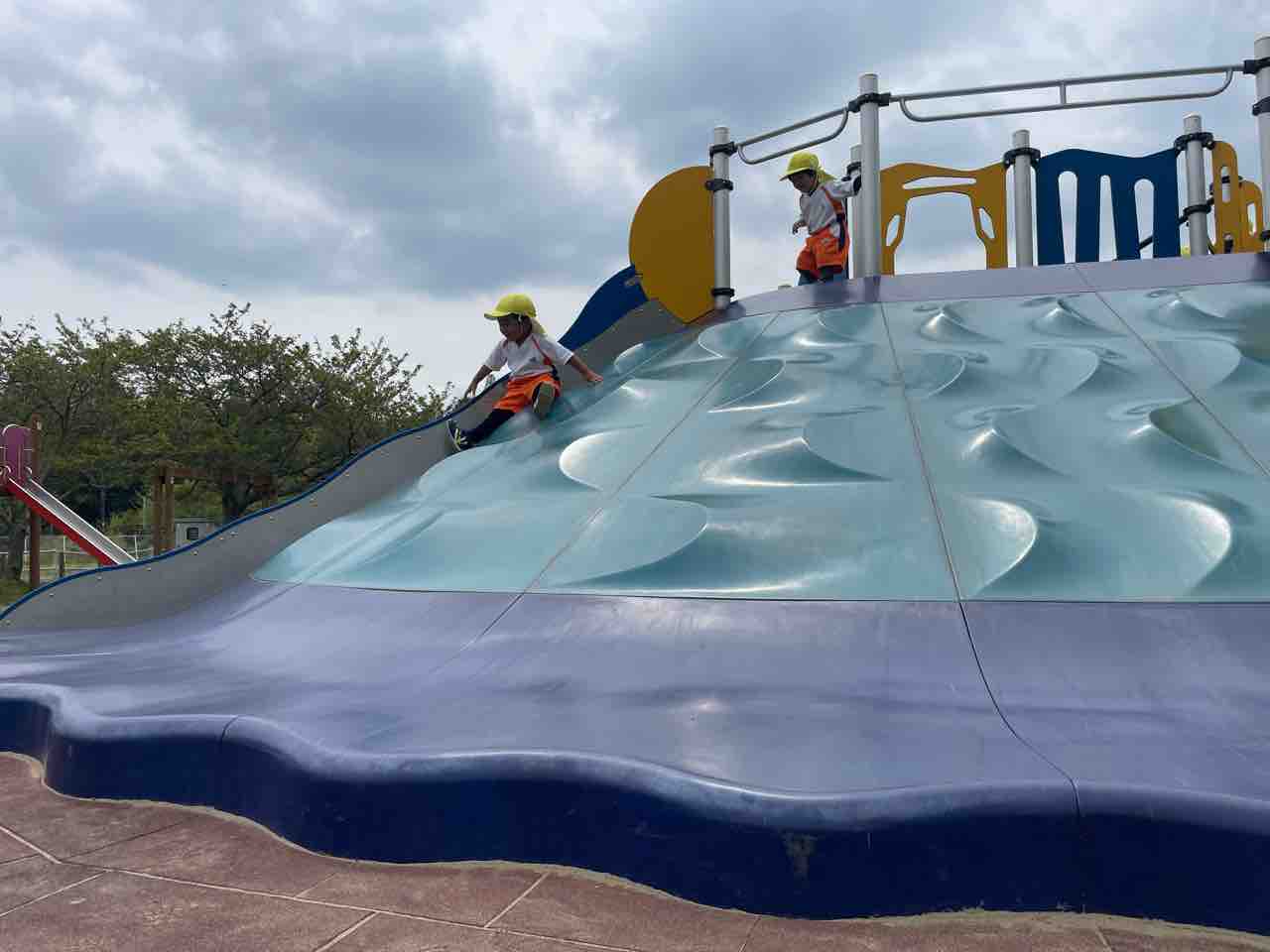 初めてのおでかけ(きりん組3歳児クラス) 2025年04月18日(金) 保育活動の様子 4月18日(金)⛅ きりん組初めてのお出かけに行ってきました!行き先は小中池公園でした。 初めてのバスでのお出かけお約束を何個かしてから乗りました! 小中池公園につき、初めは上まで登り大きな池を観察カメや鯉がいました。大きな鯉をサメと言って怖がる子もいましたよ。 上から遊具を見ていると遊びたい!との声が。階段を降りながらお花や虫を観察しました! 次は鯉のぼりを見に行こうねとみんなで楽しみにしています。 アリの巣を見つけたり、滑り台の裏が水色で水の中と思っ多様で滑り台を滑るお友達をカエルみたいと楽しむ会話も聞こえてきました