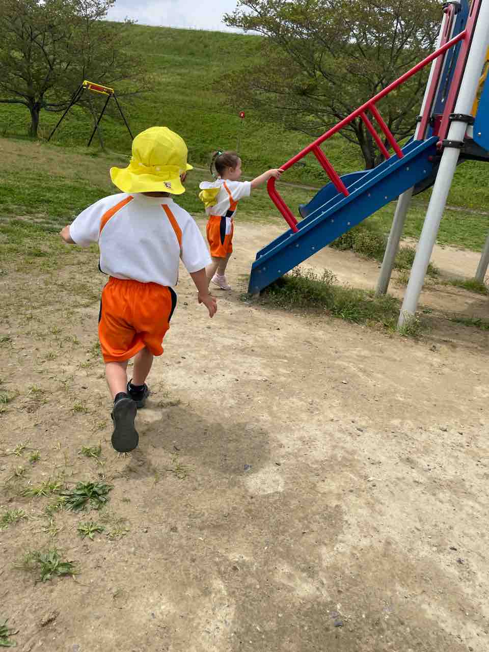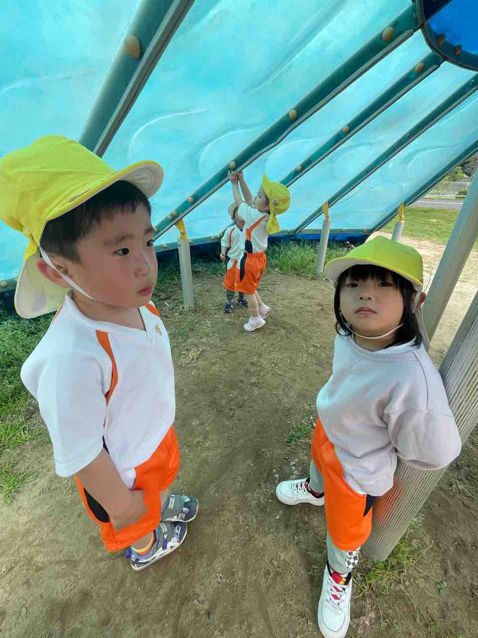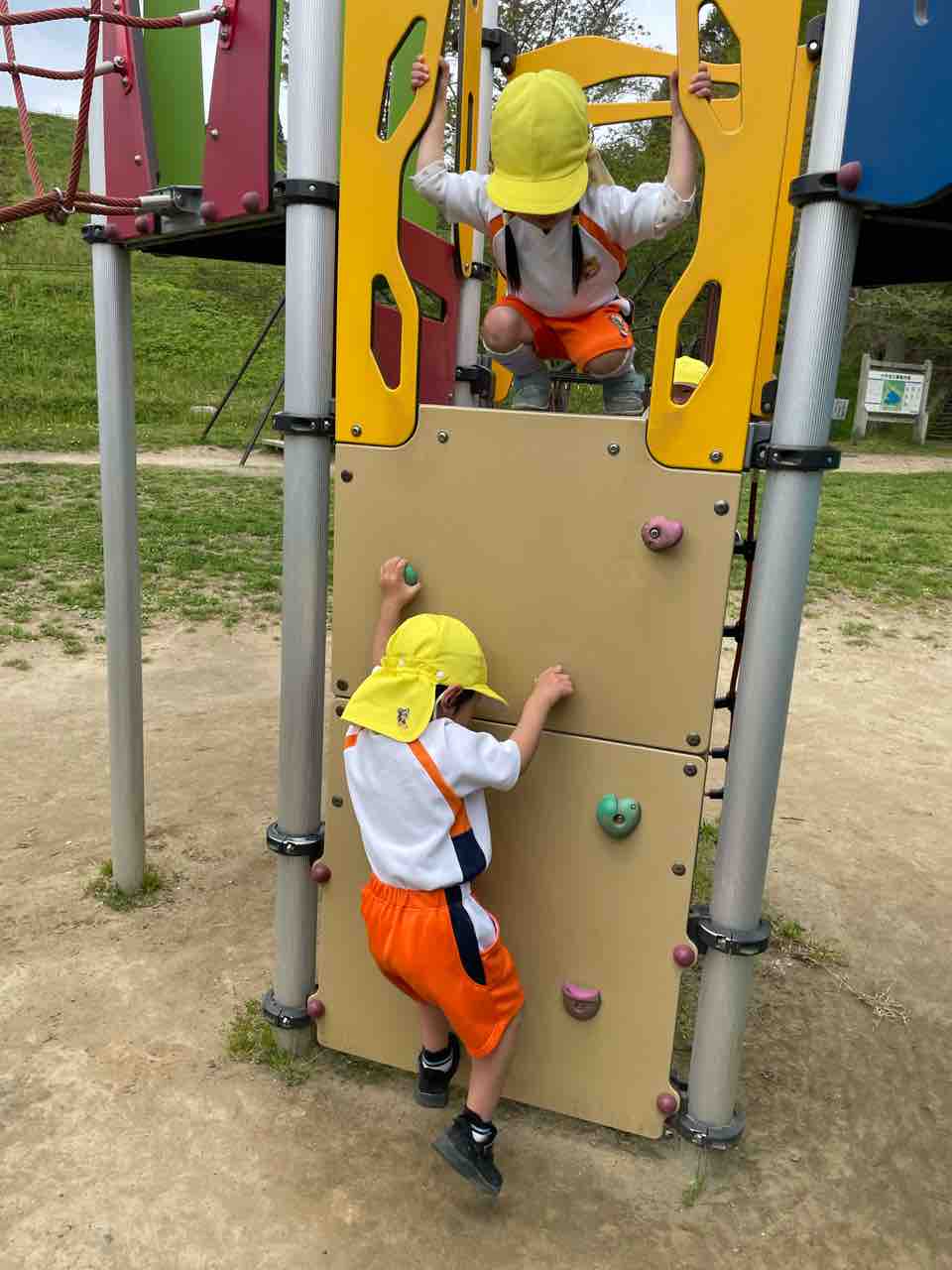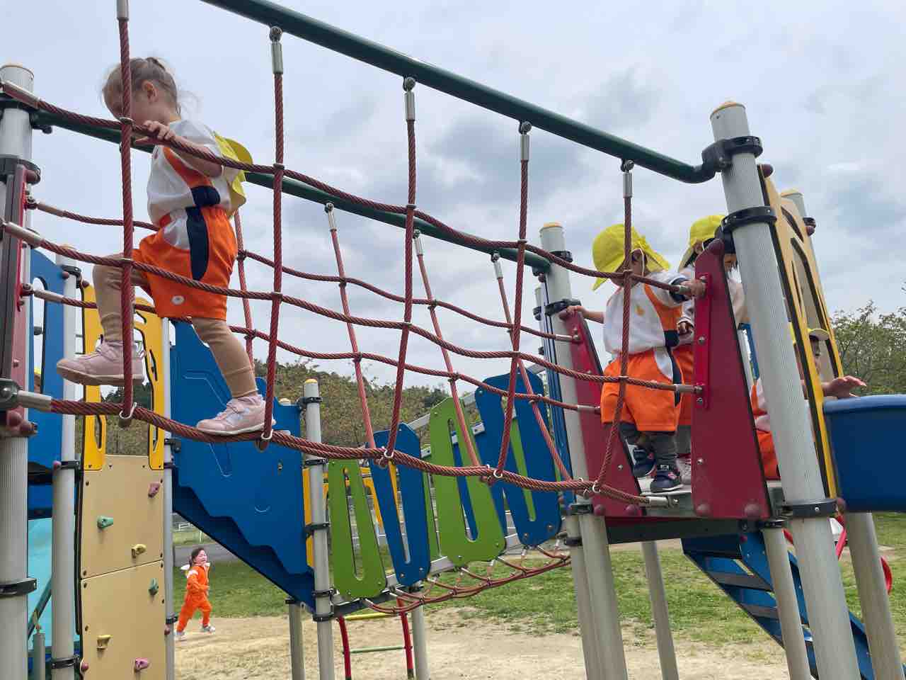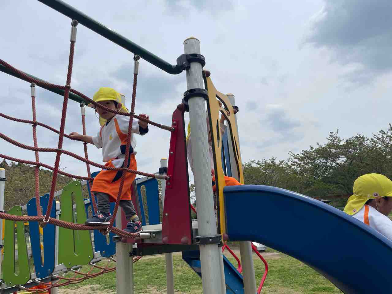 初めてのおでかけ(きりん組3歳児クラス) 2025年04月18日(金) 保育活動の様子 4月18日(金)⛅ きりん組初めてのお出かけに行ってきました!行き先は小中池公園でした。 初めてのバスでのお出かけお約束を何個かしてから乗りました! 小中池公園につき、初めは上まで登り大きな池を観察カメや鯉がいました。大きな鯉をサメと言って怖がる子もいましたよ。 上から遊具を見ていると遊びたい!との声が。階段を降りながらお花や虫を観察しました! 次は鯉のぼりを見に行こうねとみんなで楽しみにしています。 アリの巣を見つけたり、滑り台の裏が水色で水の中と思っ多様で滑り台を滑るお友達をカエルみたいと楽しむ会話も聞こえてきました